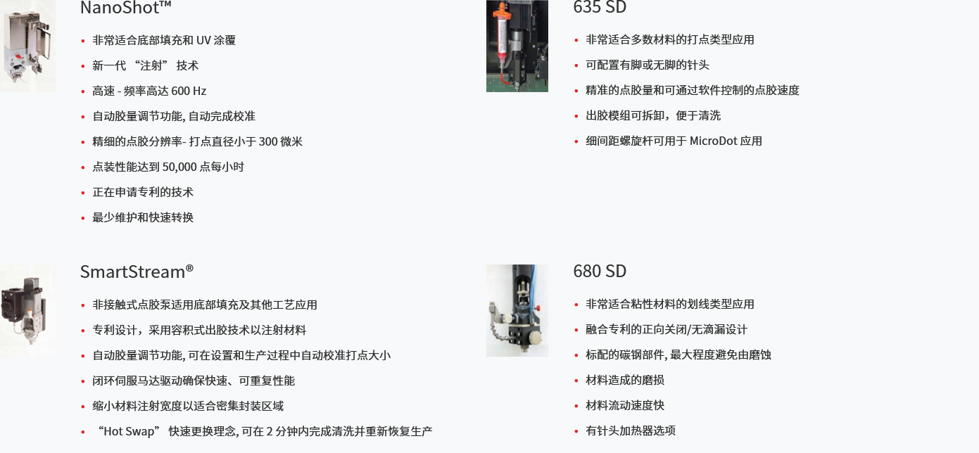 卓越的點膠泵技術是達到精準, 可重復精確點膠的關鍵, Camalot 自主研發設計系統所有的點膠泵。 這些專利的點膠泵技術完全融入于運動控制系統, 通過創新的軟件控制來驅動, 獲得穩固的點膠工藝。通過重量檢測和視覺檢測技術的閉環控制使“非手動”設置變得容易,并且 可以持續監測和維護最嚴格的工藝要求。